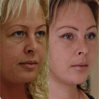 La capa de grasa subcutánea distorsiona significativamente los contornos, modificando el óvalo del rostro. Los músculos descienden, la piel se vuelve flácida. Hay pliegues nasolabiales pronunciados, arrugas, una segunda barbilla, párpados salientes, pliegues en el cuello y el escote. Pero hay una clara ventaja: las arrugas profundas y la pigmentación no son características de este tipo de cambios relacionados con la edad.